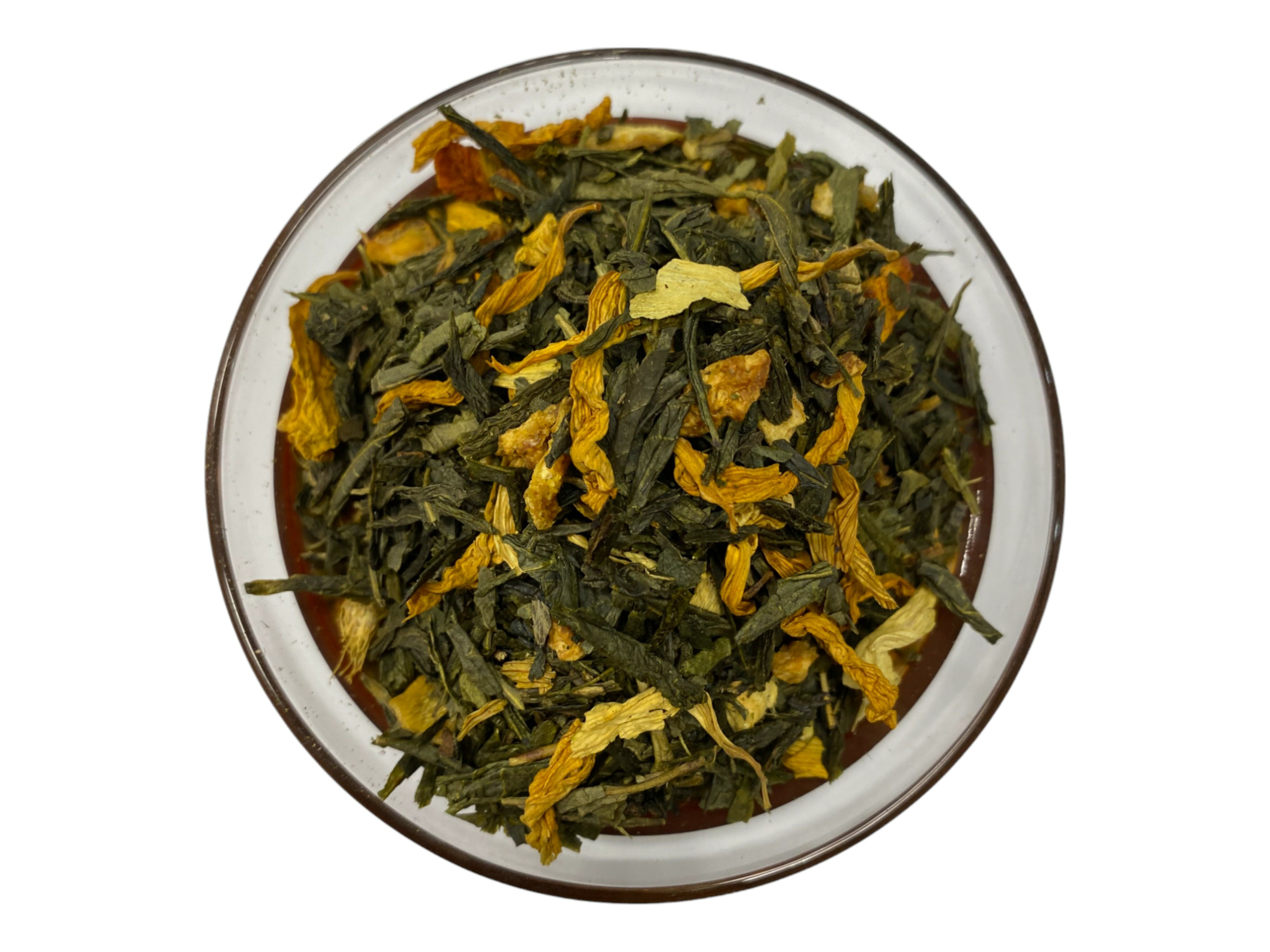 Ein beliebter Klassiker, der durch feinen Grüntee nochmal in einer ganz anderen Liga mitspielen kann. Unglaublich erfrischend und belebend. Auch im Sommer, warm getrunken, ein wohltuender Genuss.