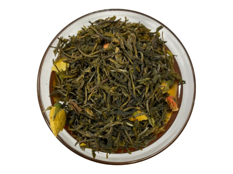 Zutaten: grüner Tee, Rosenknospen, Erdbeerstücke, Aroma, natürliches Aroma.