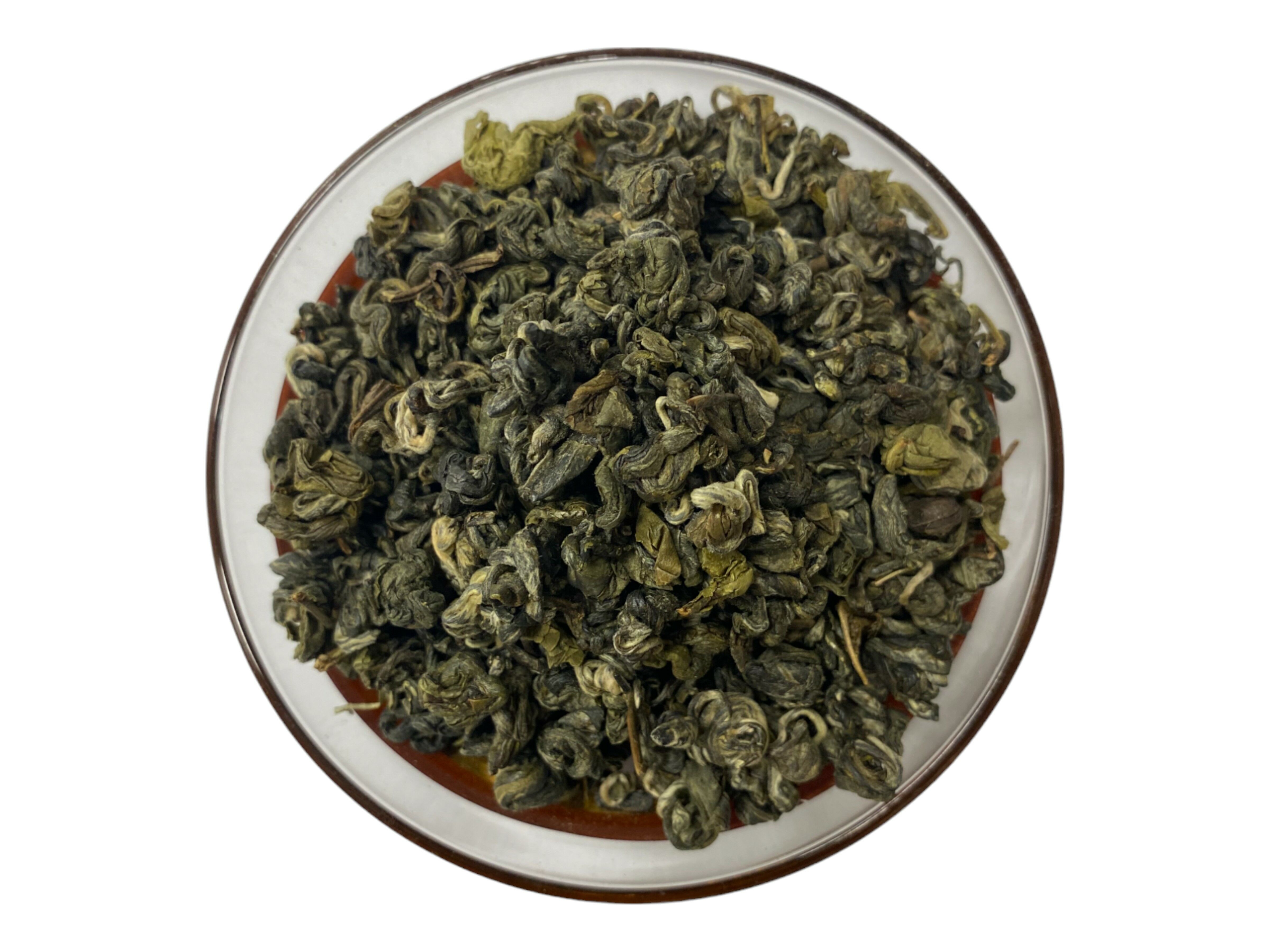 Ein außergewöhnlicher, zu kleinen Kugeln gerollter, weißer Tee aus der Provinz Guangxi mit vielen silbernen Blattspitzen.