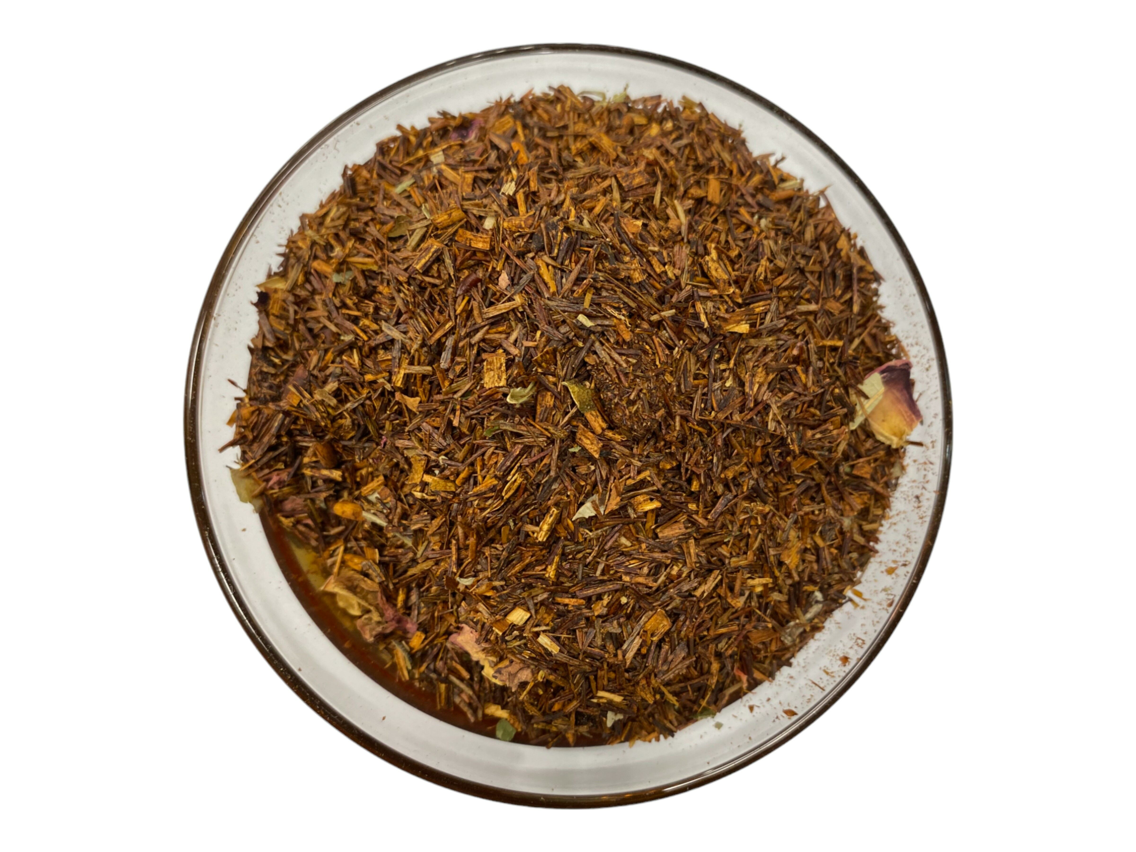 Zutaten: Rooibos, Sauerkirschstücke (2%), Aroma, Rosenblütenblätter, Brombeerblätter, natürliches Aroma.